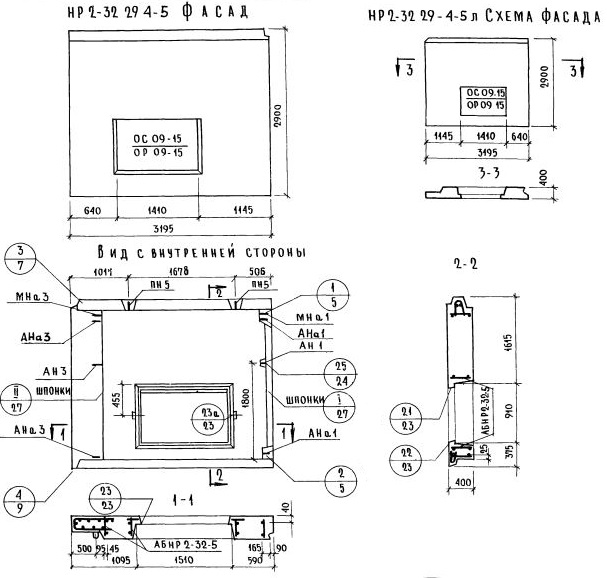 НР2-32.29.4-5л   Наружная стеновая панель рядовая по Серии 1.132-1.