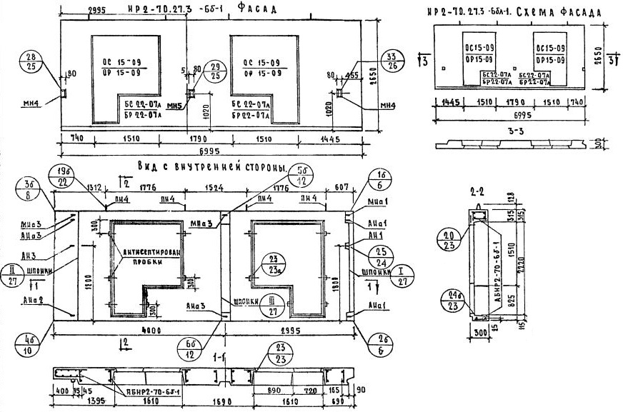 НР2-70.27.3-6бл-1   Наружная стеновая панель рядовая по Серии 1.132-1.
